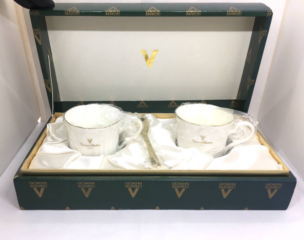 - 【未使用保管品】GIOVANNI VALENTINO ジョバンニバレンチノ ペア カップ&ソーサー スプーン付 2客セット