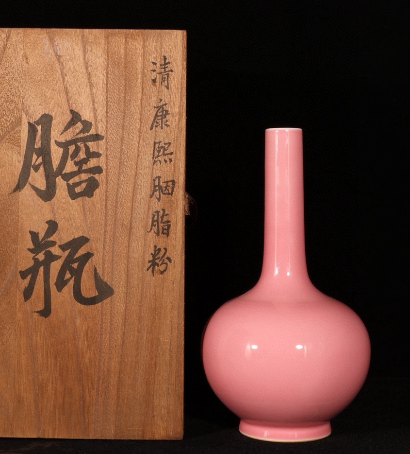 > 中国清代 共箱付き 康熙年製 カルミン粉末胆瓶 時代物 陶磁器 中国美術 高さ22 cm 直径12 cm 骨董品 唐物 819