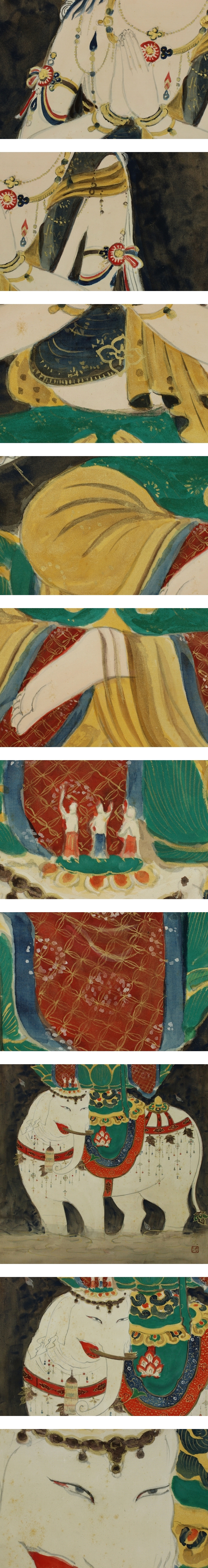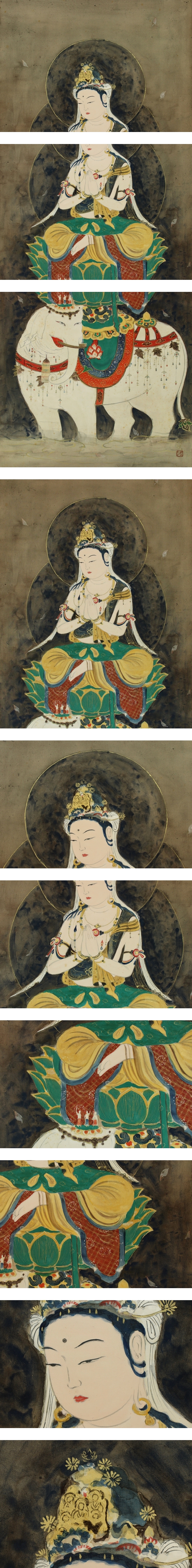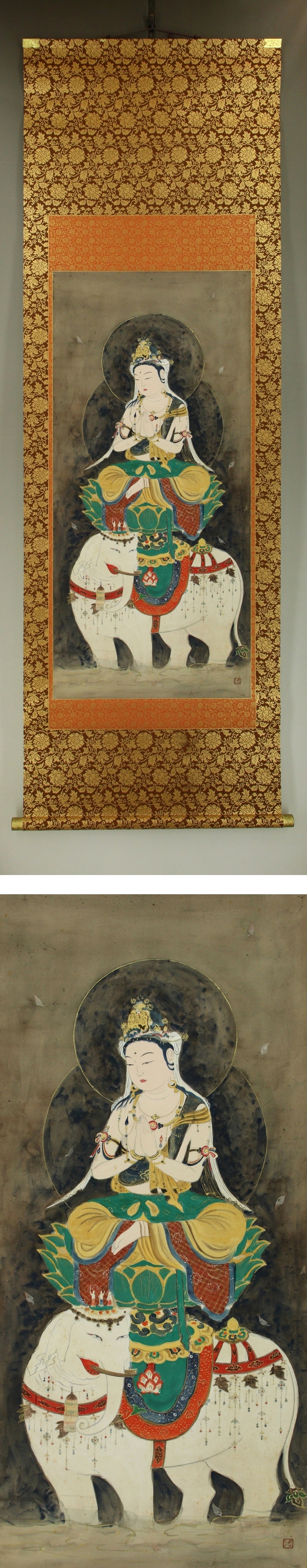 - 【真作】康端倪【仏画・普賢菩薩】◆絹本◆共箱◆掛軸 r05034