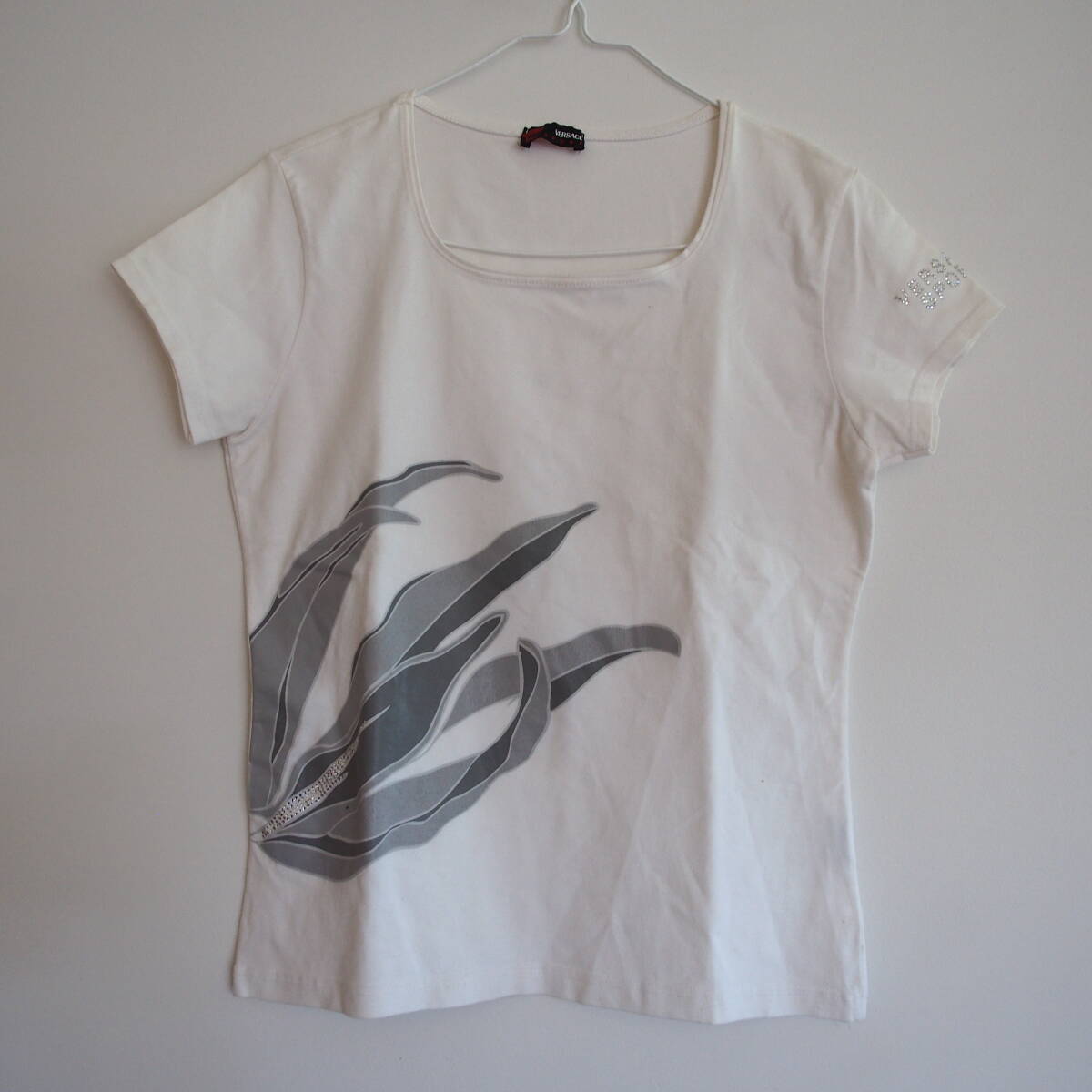 > 【美品】VERSACE SPORT ヴェルサーチ スポーツ Tシャツ 半袖 ラインストーン リーフ柄 ストレッチ スポーツ フレンチスリーブ ホワイト