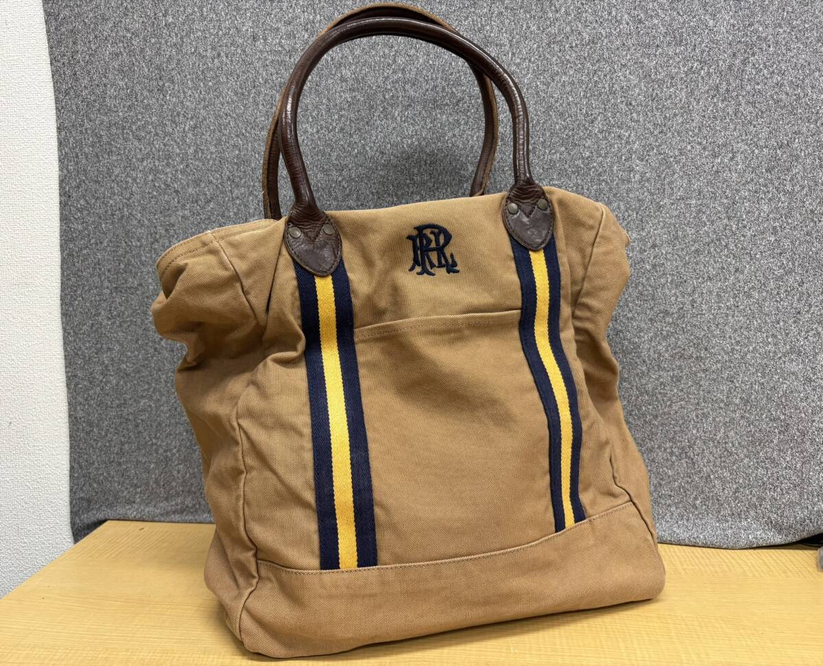 - ラルフローレンラグビーRALPH LAUREN RUGBYレザーハンドルキャンバストートバッグ★ジップ付き★A1401665B