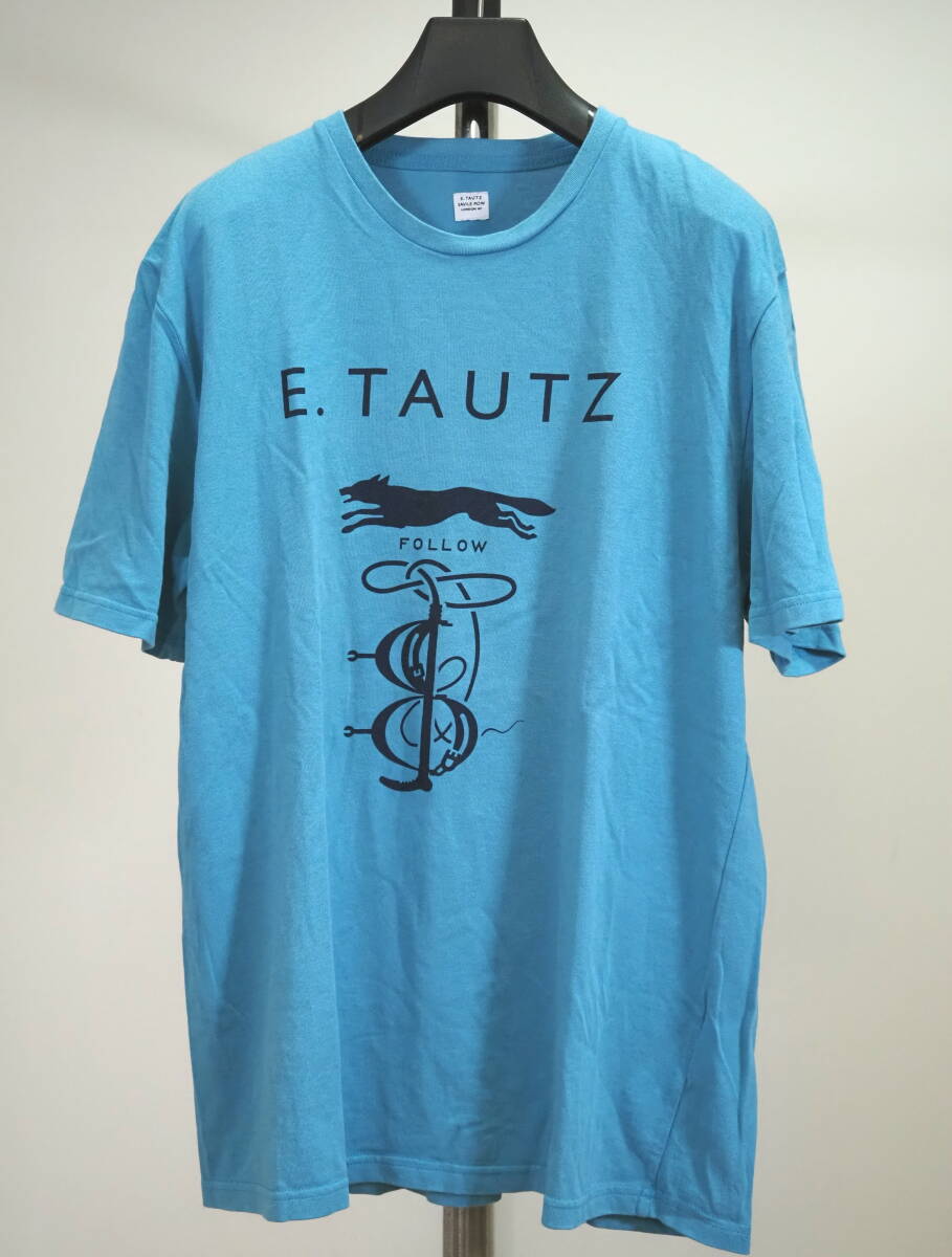 - E.TAUTZ イートウツ ロゴプリントオーバーサイズTシャツM青 UK製