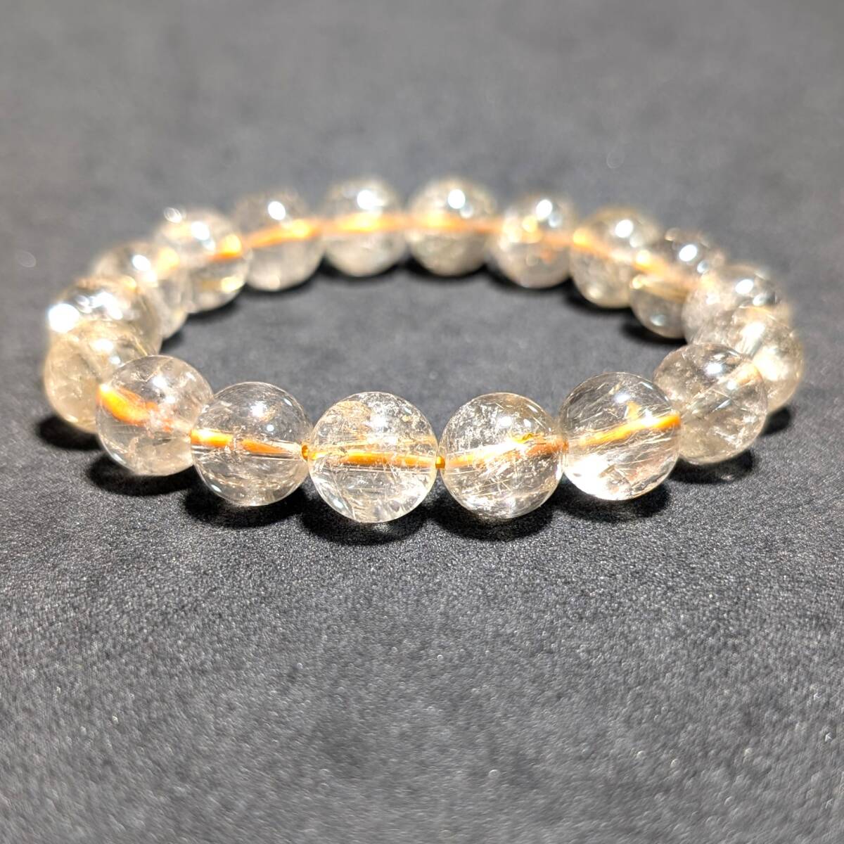 - 魅惑のオーラを放つ ゴールドルチル クォーツ ブレスレット 11ミリ 虹入り金針水晶 最強天然石 パワーストーン 金運 お守り効果 ギフト