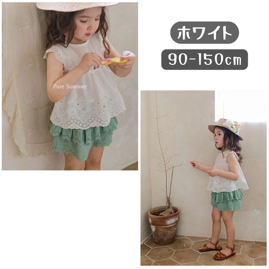 > ホワイト 90cm レース 半袖 3カラー トップス カジュアル フォーマル 女の子 キッズ ガールズ 春夏 かわいい
