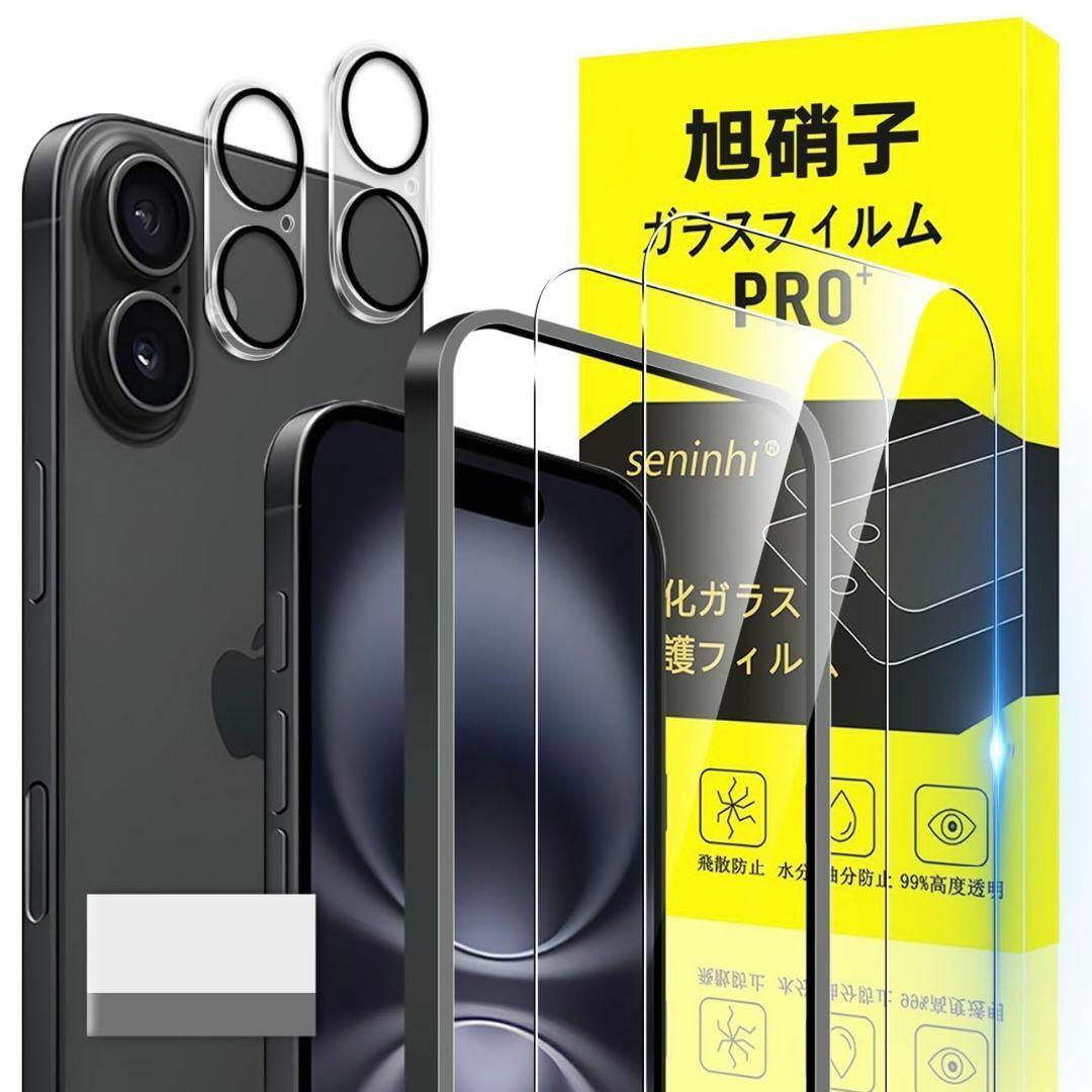 - 2-13★iPhone16 ガラスフィルム ガイド フィルム2枚 レンズ保護