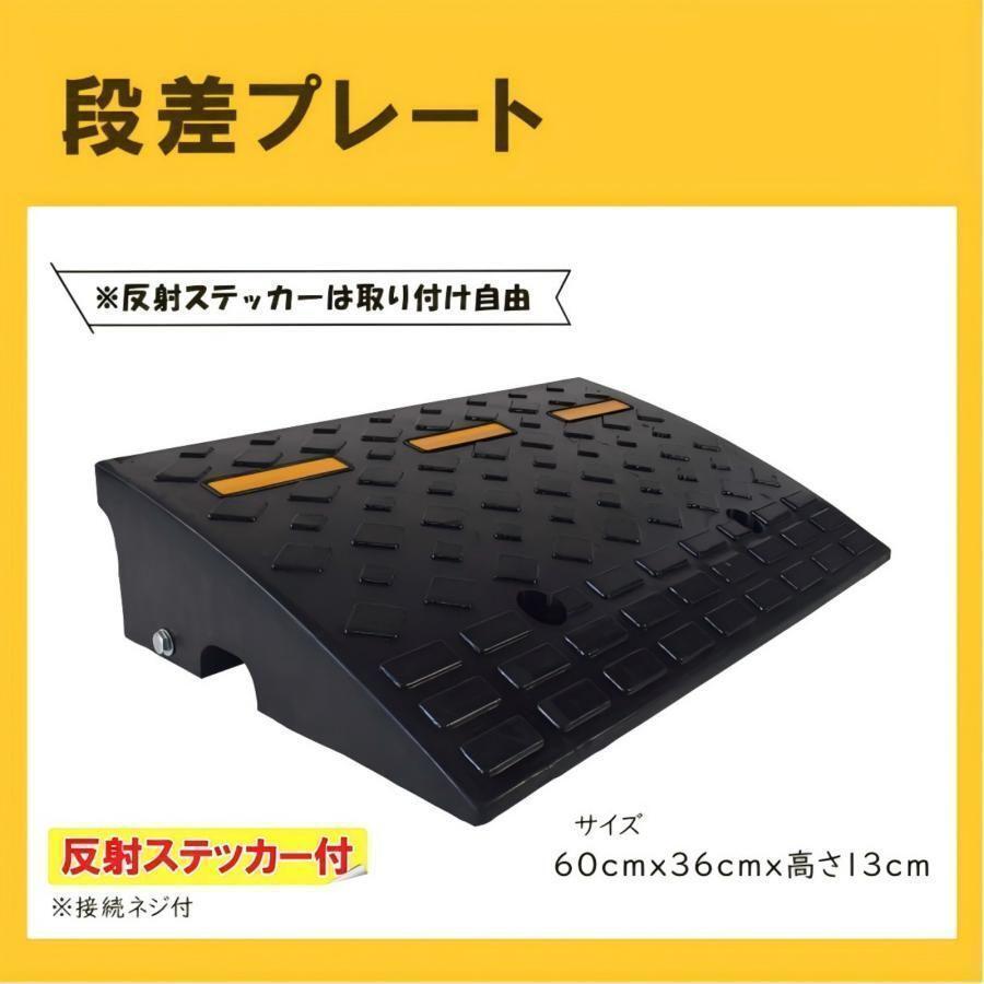 - 段差プレート 13cm段差 幅60cm 2284ゴム製 スロープ 滑り止め 玄関 駐車場 段差解消スロープ 反射ステッカー付 連結用のボルト付き