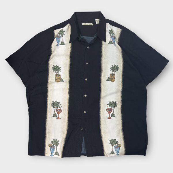 > ★パームツリー&トロピカル柄★柄ボタン★Batik Bay 半袖シャツ sizeXL アロハ ハワイアン 古着 クリーニング プレス済み 904