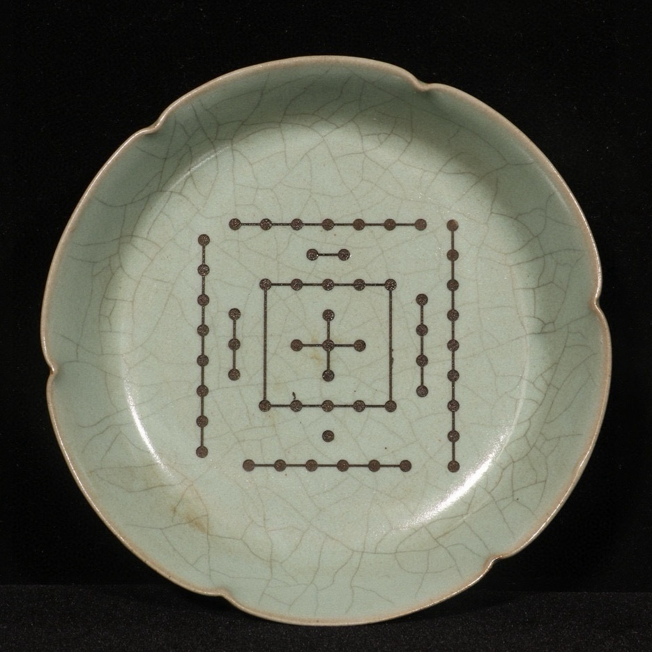 - 時代旧蔵 宋時代 青龍寺 汝窯 八卦紋皿 古陶磁器 高さ4 cm 直径14.5 cm 珍品旧蔵 古賞物 時代物 820