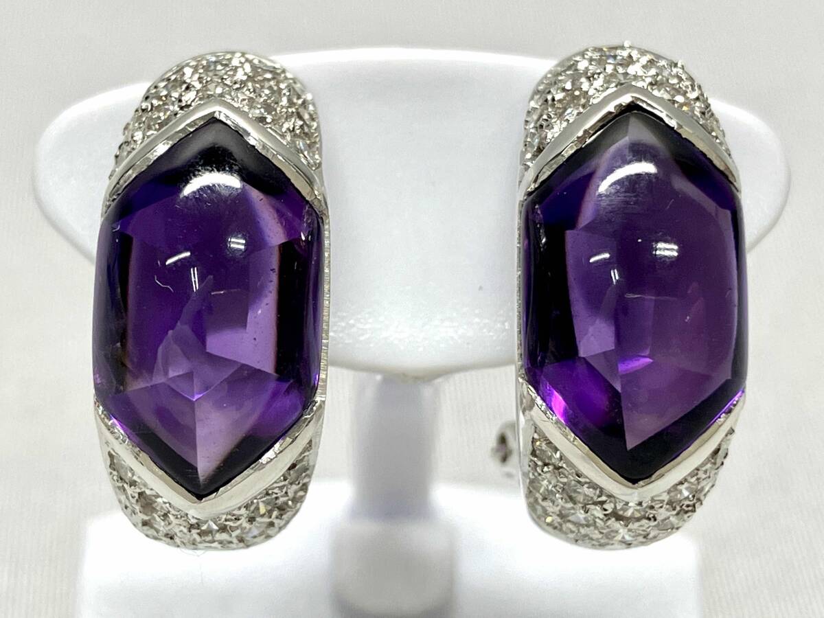 > K18 天然アメシスト/天然ダイヤモンド(検査石のみ) 677/087の刻印あり イヤリング 10.0g H1.9×W0.8cm ソーティング付
