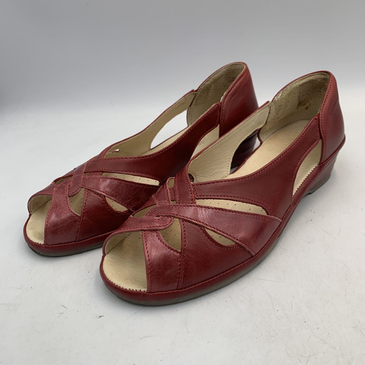 - T576 Hush Puppies ハッシュパピー レディース オープントゥ パンプス 36 約 23cm レッド レザー 本革