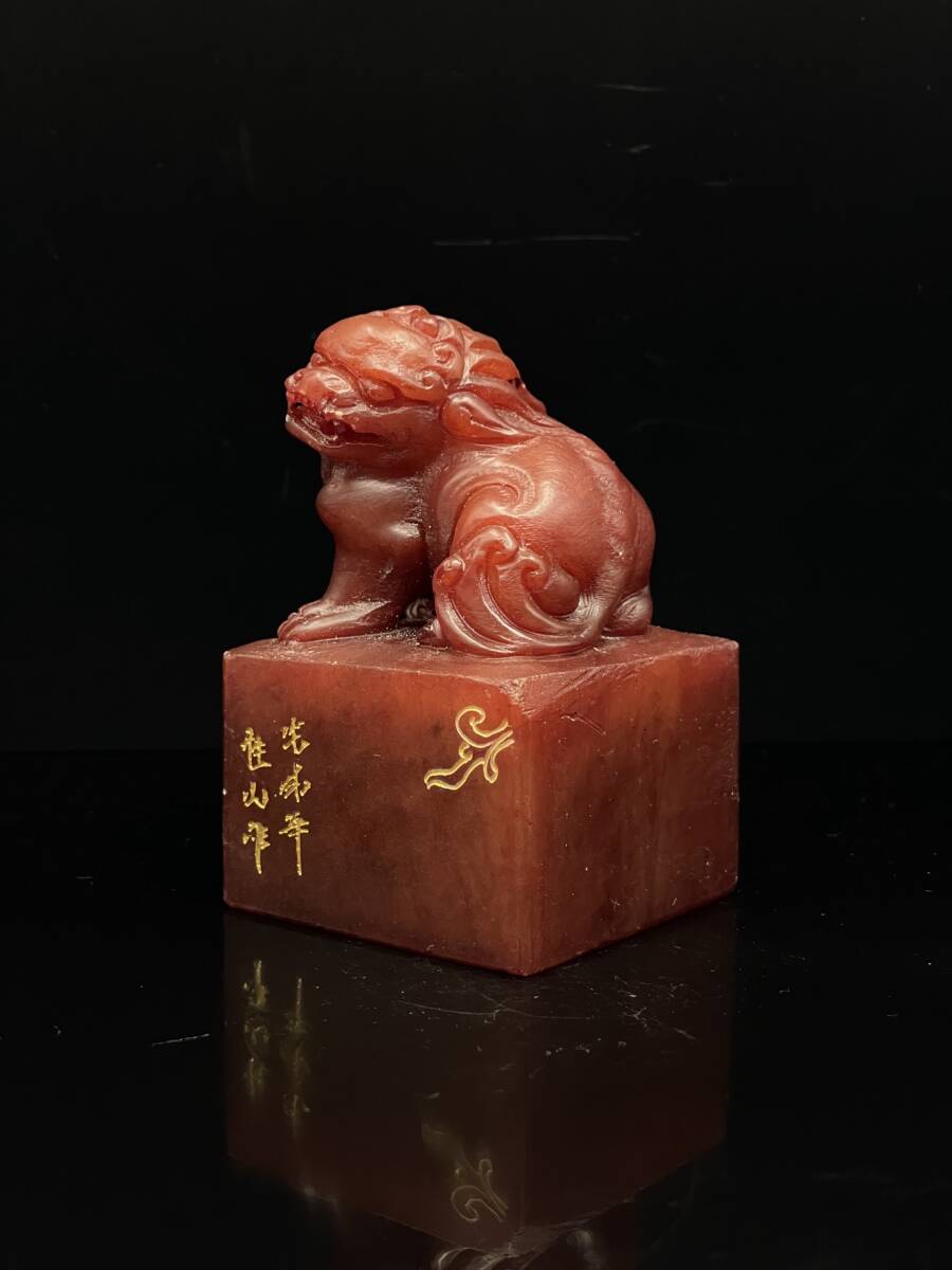 - 清時代 古寿山石 紅田黄石彫 神獣印章 印鑑 文案置物 置物擺件 時代物 古董品 骨董 旧家藏出 唐物 中国古玩 古美術