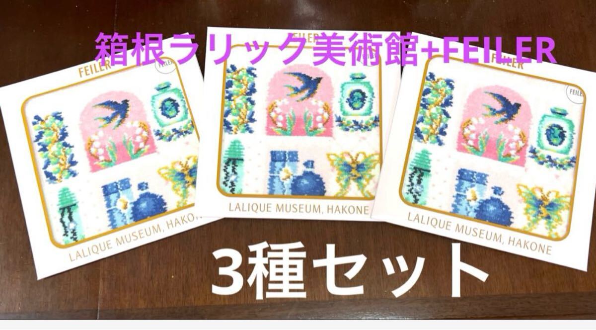 - 新品 未開封 フェイラー ハンカチ 箱根ラリック美術館 コラボ 3種 3枚 ブルー ピンク グリーン