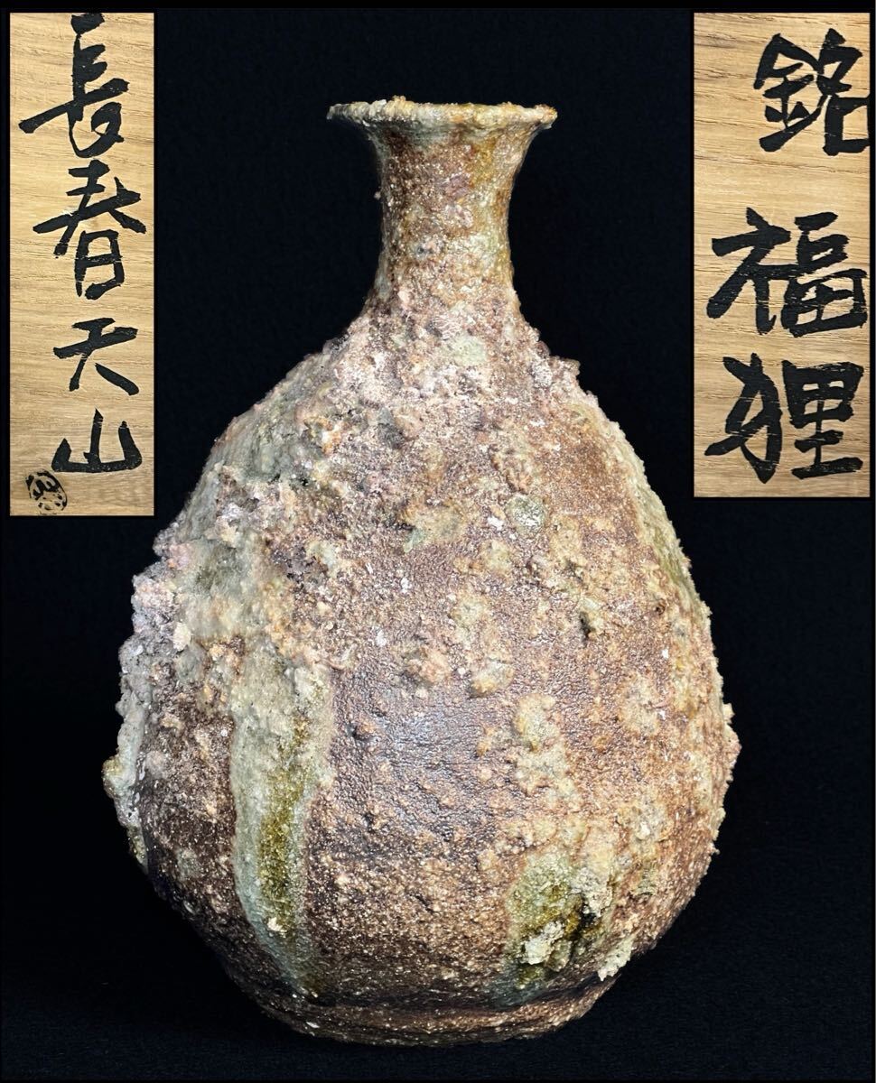 - 長春天山 窯変自然釉 銘 福狸 花入 徳利 花器 壺 二重箱 高さ約23CM