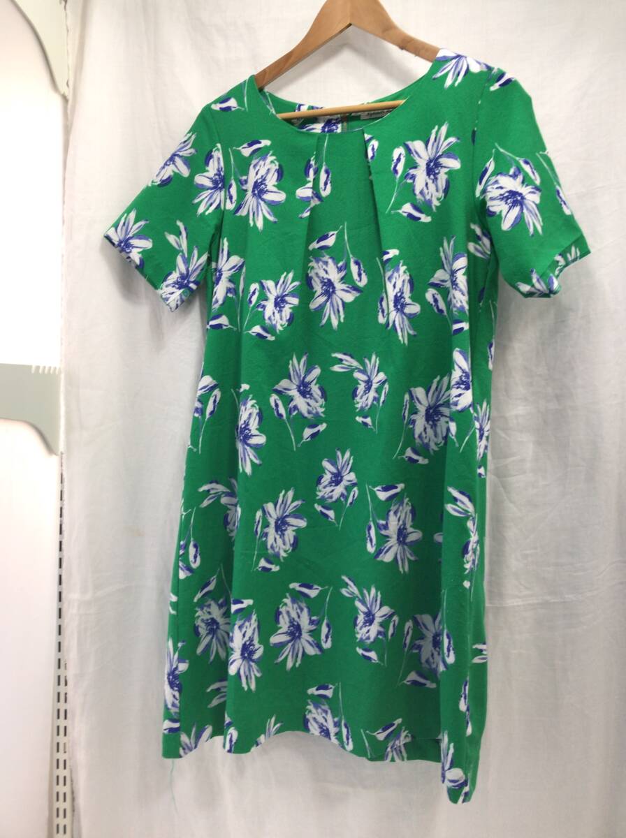 - アルファベッツアルファベット 半袖 ワンピース 膝丈 グリーン ホワイト ブルー 花柄 Alphabet's alphabet E2