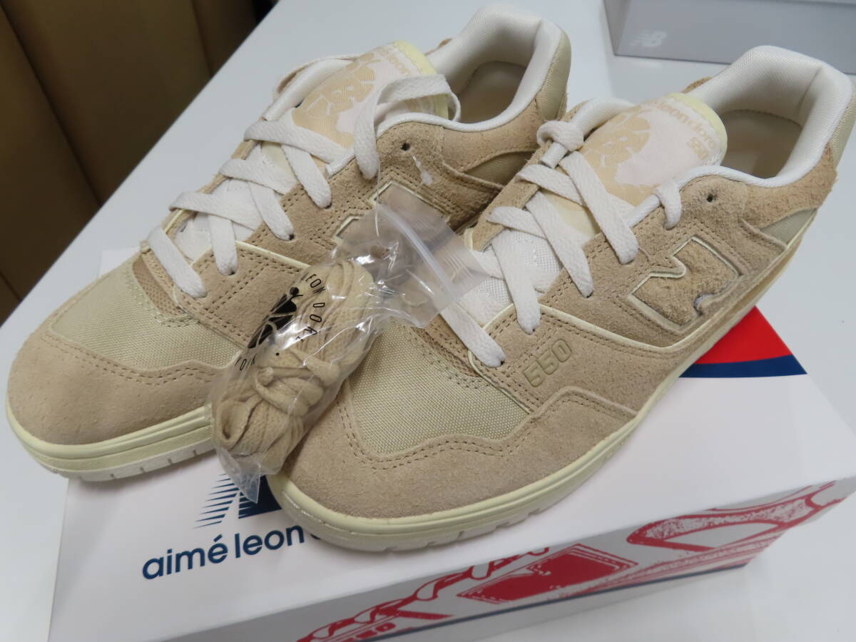 > 【未使用品】Newbalance×aime’ Leon dore(ニューバランス×エメレオンドレ)メンズスニーカーシューズ BB550DA1 BEIGE【US9-27cm】