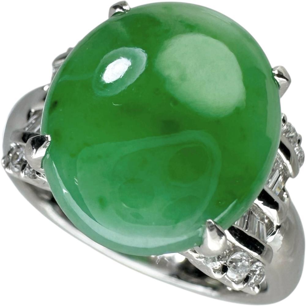 > 16号 ヒスイ 6.41ct ダイヤモンド 計0.39ct リング・指輪 Pt900プラチナ 10.4g レディース