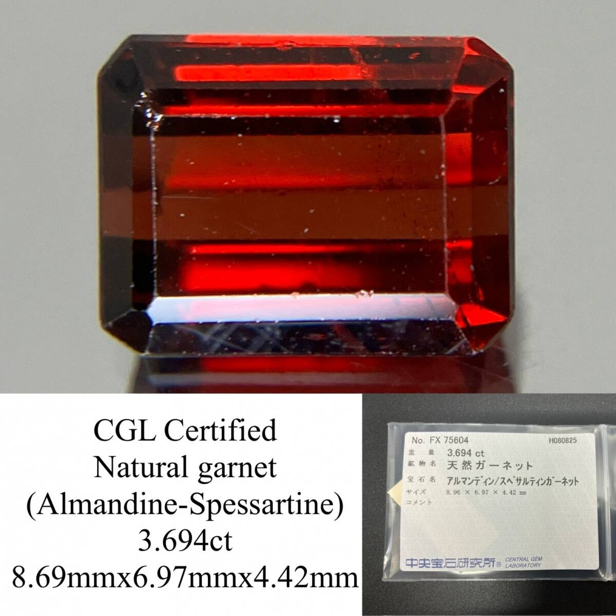 - ガーネット (アルマンディン-スペサルティンガーネット) 天然 3.694ct 中央宝石ソーティング付き 8.96×6.97×4.42 ルース 6315YY