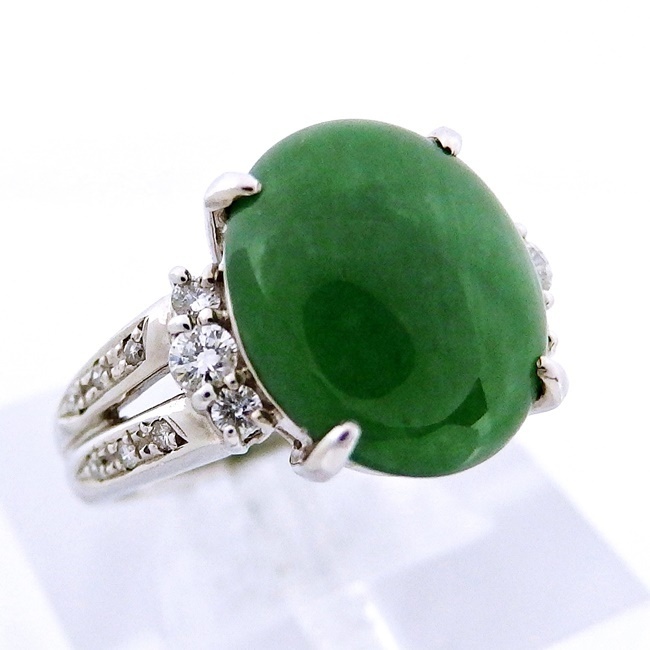 > Pt900 ★リング ヒスイ6.26ct ◇ダイヤモンド0.29ct ●11.5号 ◆鑑別書付 【中古】 /s21657