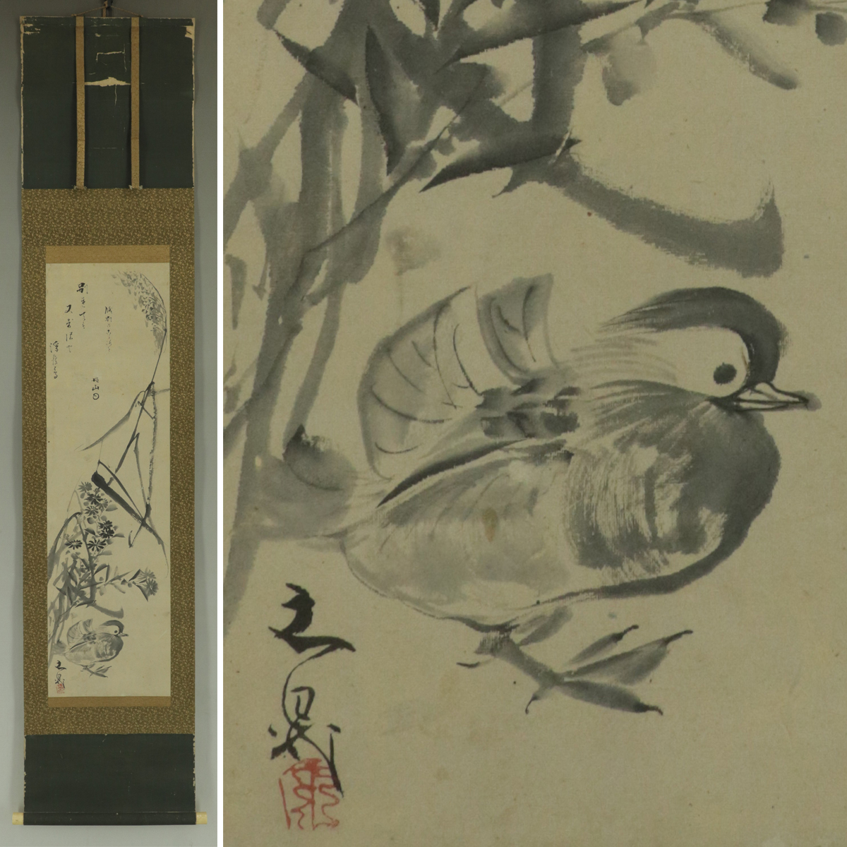 - 【模写】谷文晁【菊に鴨図】◆紙本◆合箱◆掛軸 s06088
