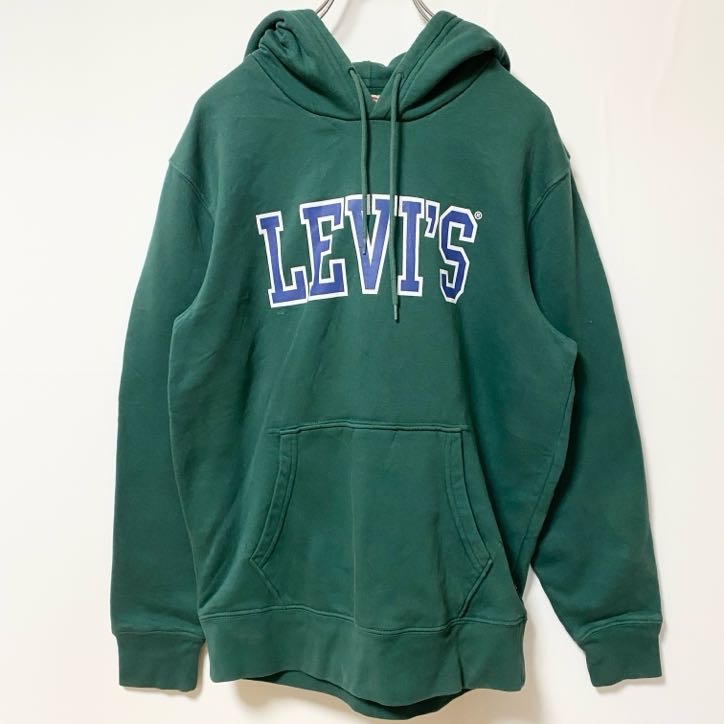 - 古着 used LEVI'Sリーバイス 長袖ロゴプリントプルオーバーパーカー フーディー レトロデザイン グリーン Sサイズ