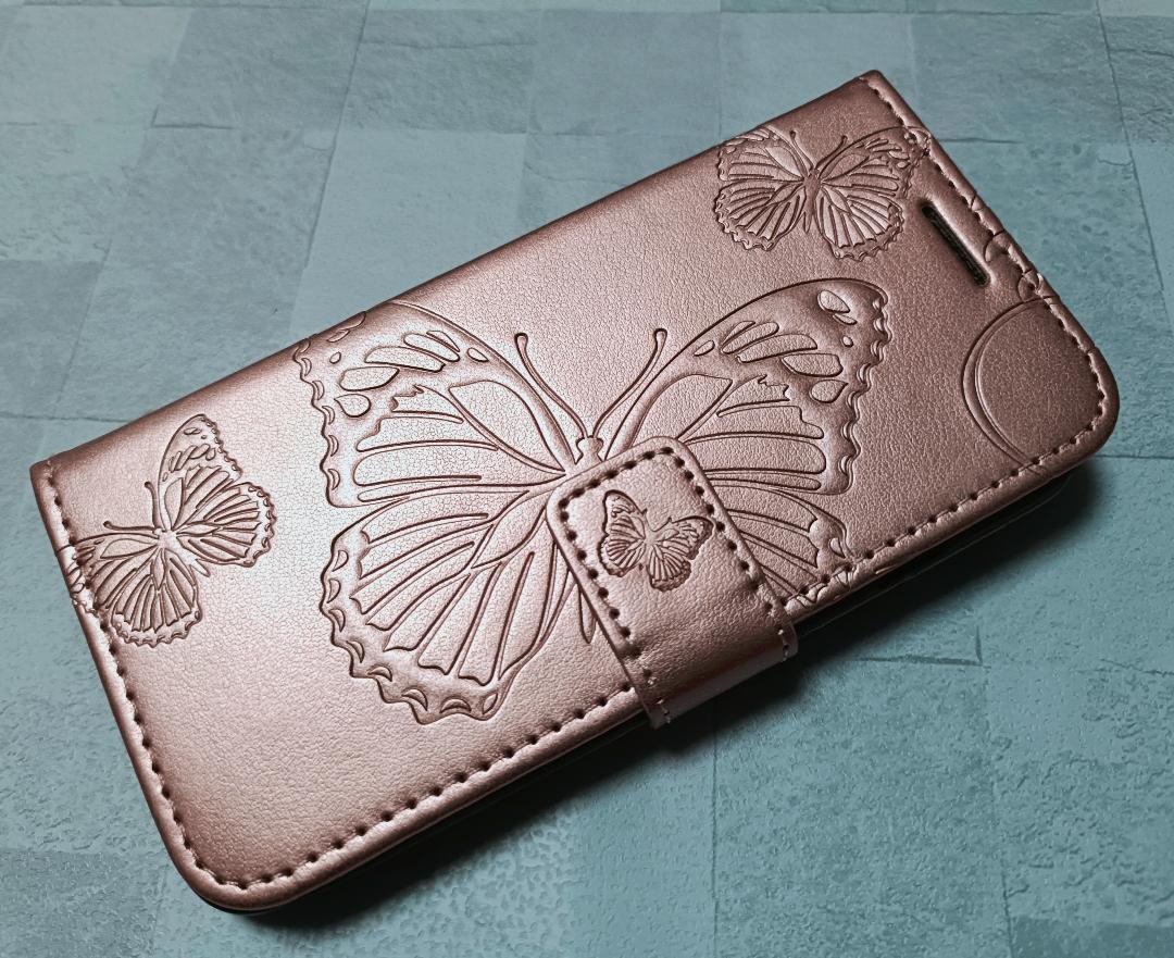 > 手帳型 iPhone7/8/SE 用 ケース 蝶柄 バタフライ ピンクゴールド