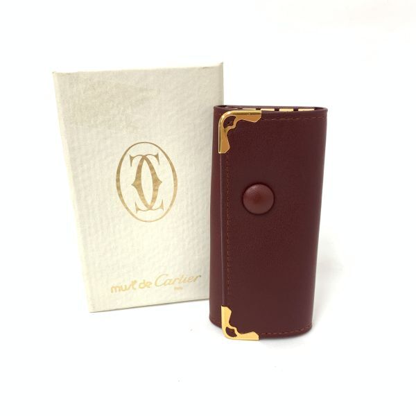 > D1375 新品未使用! 格安! Cartier カルティエ マストライン 4連キーケース レザー ボルドー