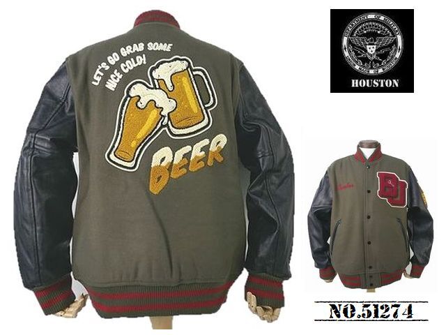 > 【送料無料 51%OFF】HOUSTON ヒューストン メルトン アワードジャケット 「BEER」 NO.51274 OLIVE DRAB_Lサイズ