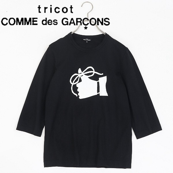 > 【HA22】◆tricot COMME des GARCONS トリコ コムデギャルソン AD2019 フロントプリント コットン 半袖 Tシャツ 黒 ブラック M