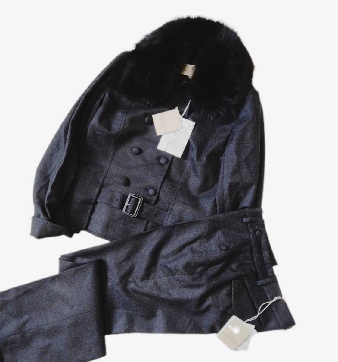 > 未使用*トラサルディ*TRUSSARDI*定価13万*セットアップ*ダークグレー*パンツスーツ*ブルーフォックスファー*日本製*ウール*ジャケット