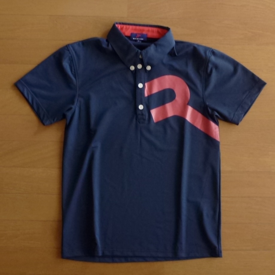 > 美品 RODDIO ロッディオ ゴルフ 半袖 ポロシャツ ネイビー ビッグロゴ ボタンダウン ストレッチ メンズ M 即決あり!