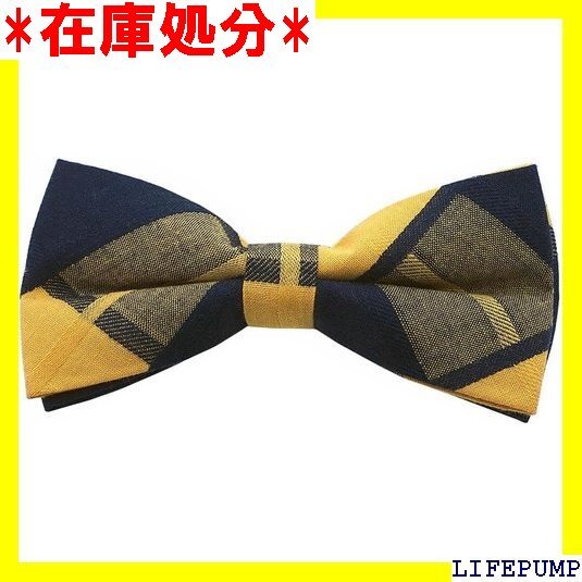 - Bowties.jp イエロー ネイビー チェック 蝶ネクタイ ボウタイ 簡易装着タイプ bd216 852