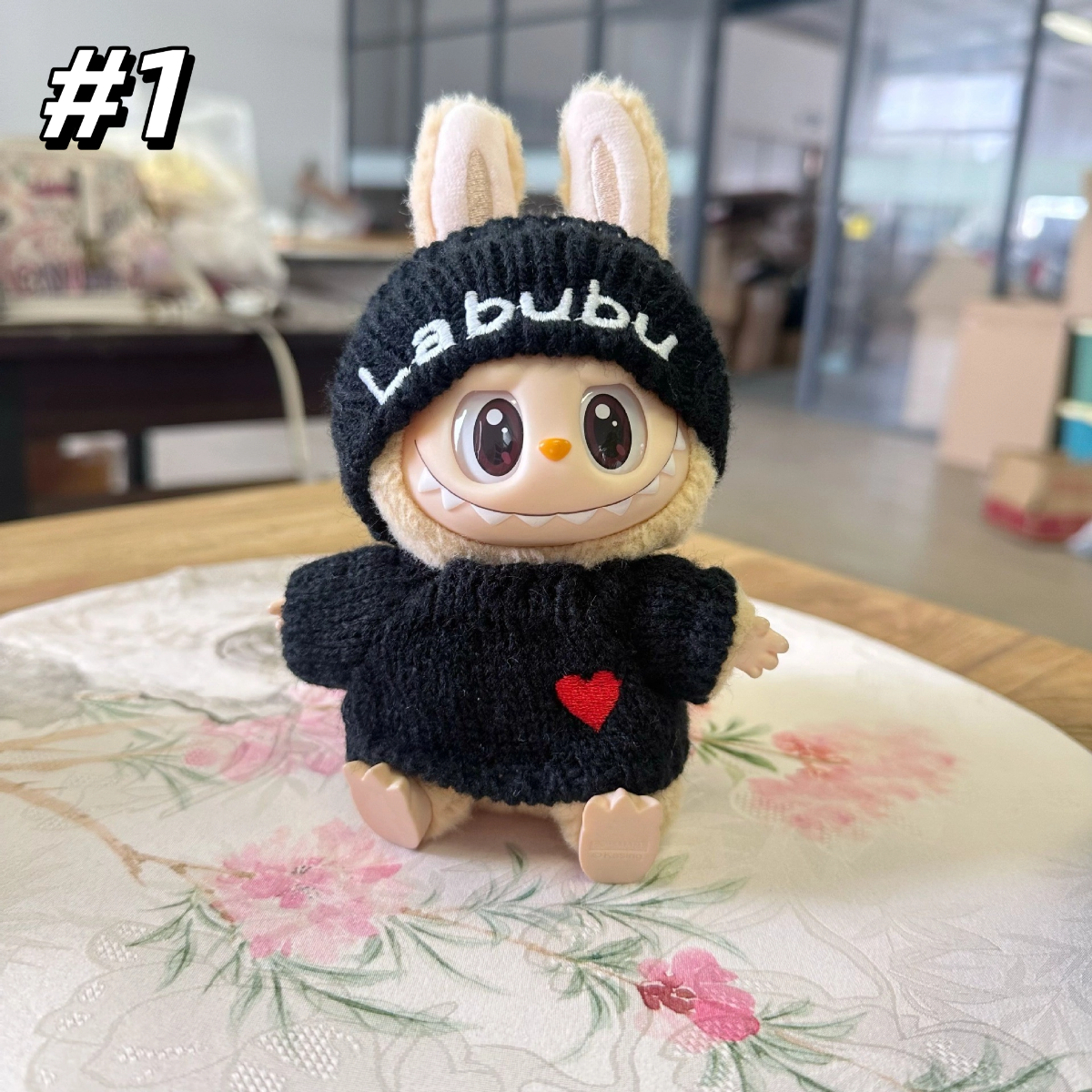 - Labubu 17cm ドール服 坐坐パーティーシリーズ ぬいぐるみ 衣装のみ 本体ではない 愛の 帽子 セーター 着せ替え服