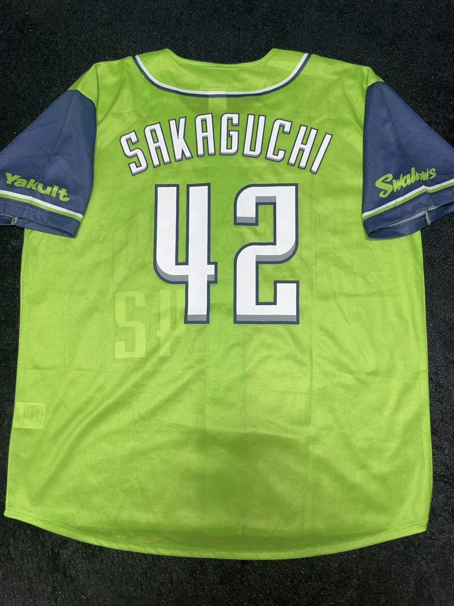- 即決 送料無料 東京ヤクルトスワローズ 坂口智隆 ユニフォーム マジェスティック製 FREEサイズ プリント 燕パワー 2018年 グリーン 緑