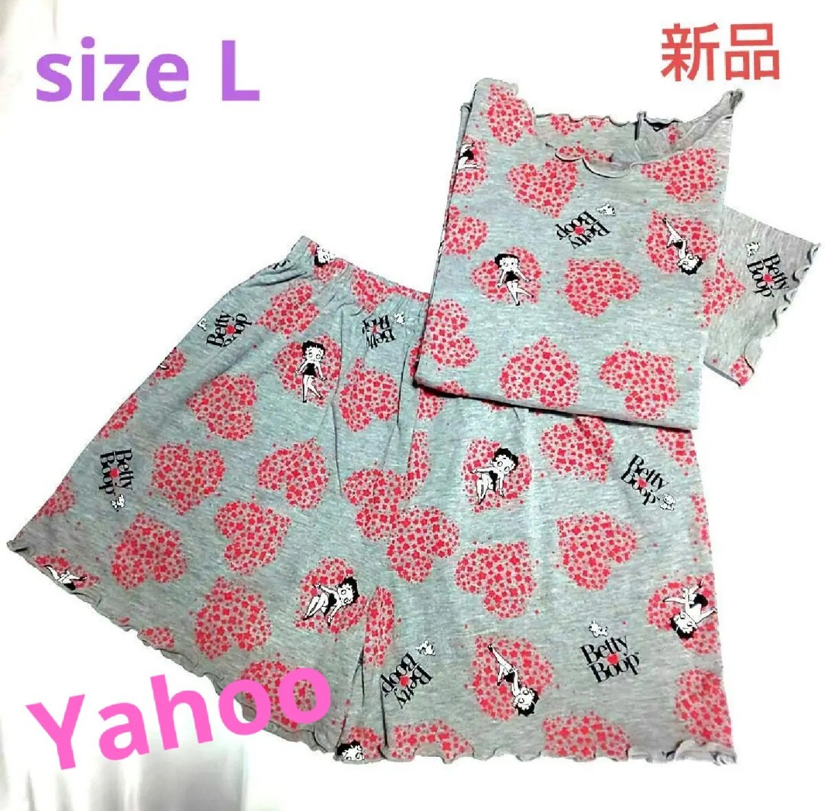 - Betty Boop ベティちゃん ハート柄ルームウェア上下セット グレー系色【新品】