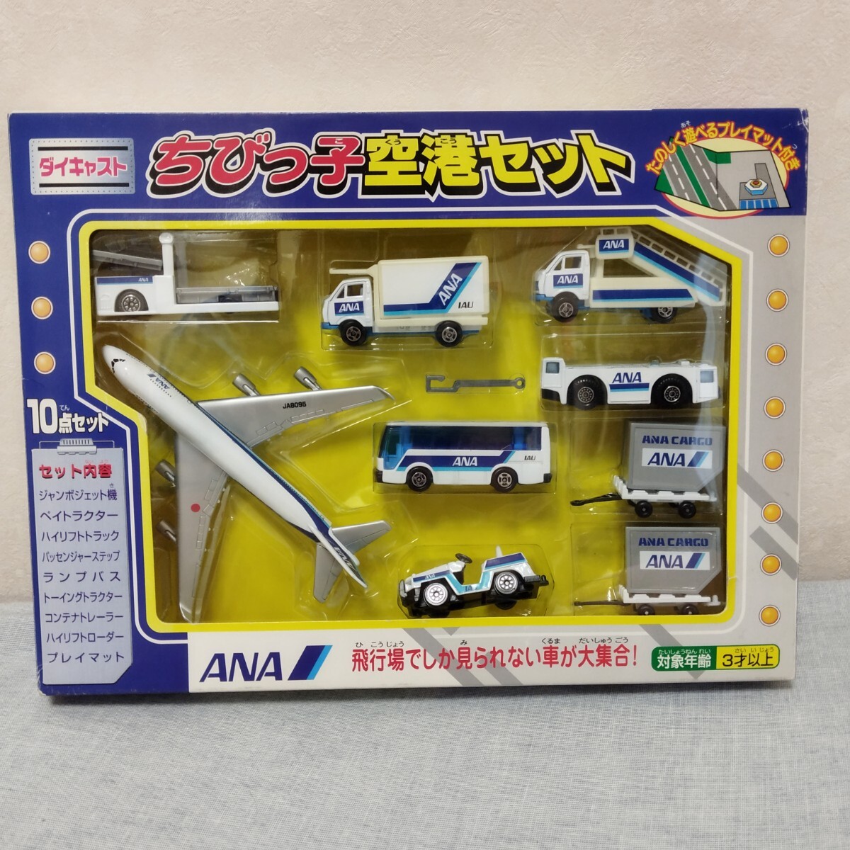 - ◇ かなり前のもの 未使用品 ダイキャスト ちびっ子空港セット ボーイング747 ANA 全日空 飛行機 車 ミニカー 模型 プレイマット付 ◇