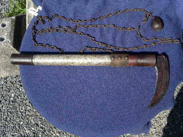 - ★レトロ★ 螺鈿細工 鎖鎌 くさり鎌 鉄製 忍者 古武術 古道具 時代 武具 (ビンテージ・アンティーク・インテリア)