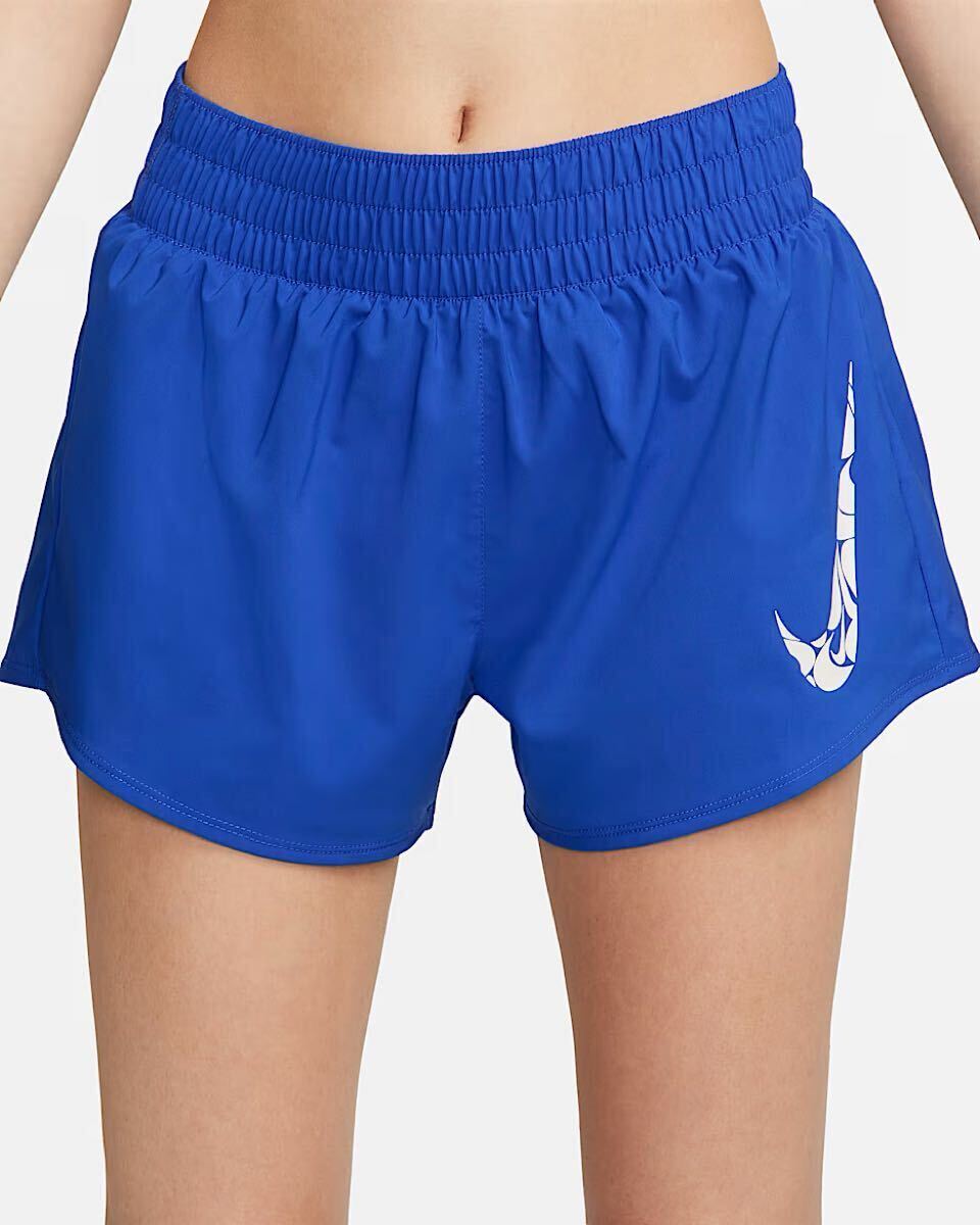 - M 新品 ナイキ ワン ウィメンズ Dri-FIT ミッドライズ 8cm ショートパンツ (インナー付き)ランニング フィットネス ショーツスウッシュ 青