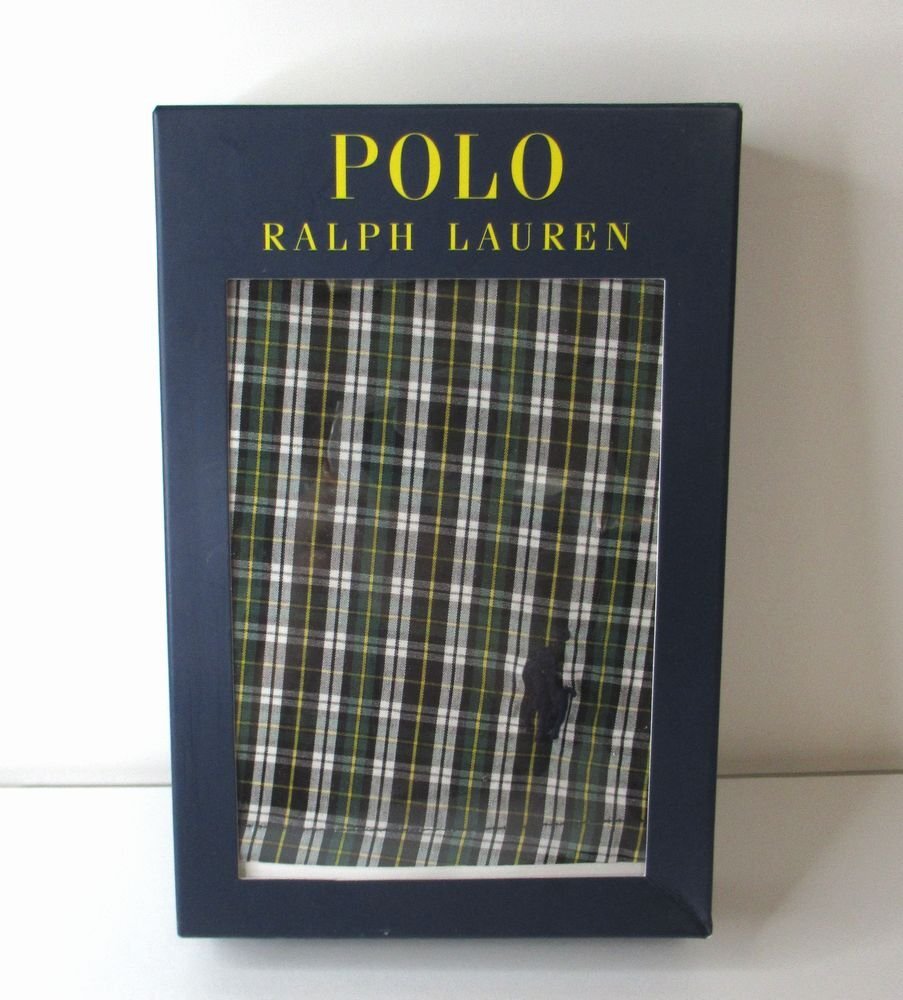 > ♪未使用/お箱入り!POLO RALPH LAUREN(ポロラルフローレン)前開き/トランクス/メンズ下着/サイズLL/ロゴ刺繍&グリーン系チェック柄