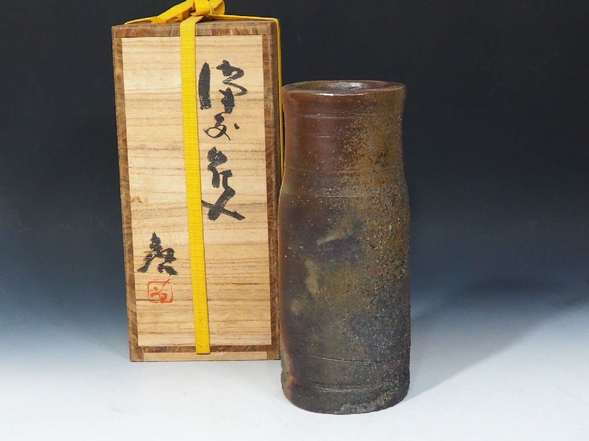 > 【真作】 藤原啓 ● 人間国宝 ≪ 備前花入 ≫ 共箱 花瓶 花器 備前焼 息子:藤原雄 『人間国宝 小川処堂』
