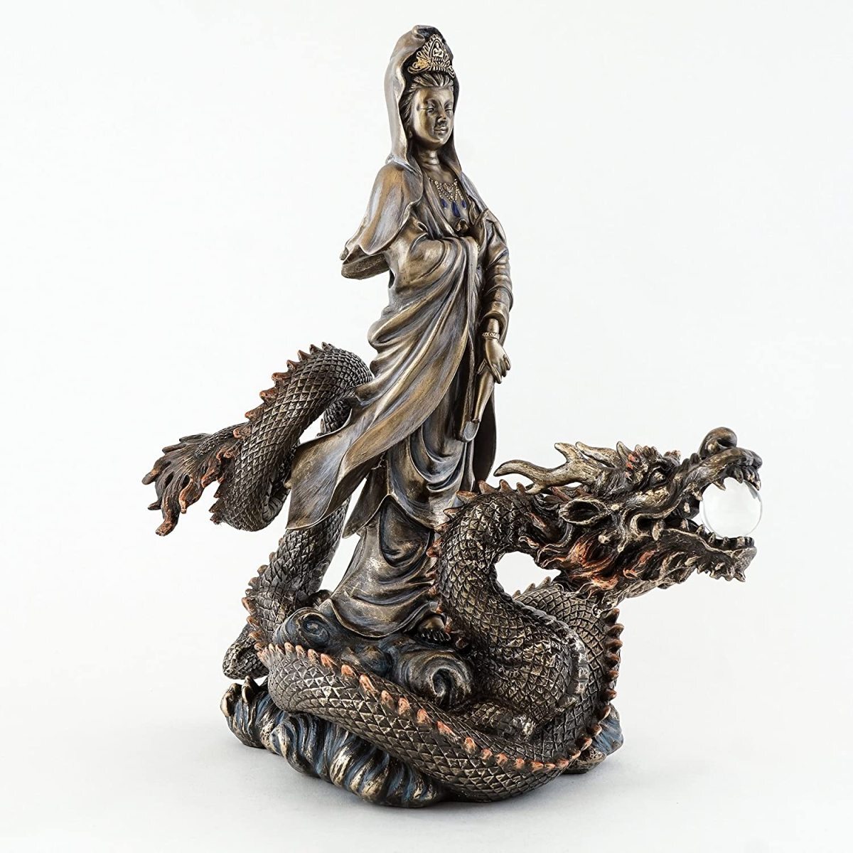 - セール!即納!騎龍観音菩薩 龍頭観音、天龍夜叉の身を表し雲中にいる龍上に在る慈悲の観音様 ブロンズ風アンティーク仕上げ(輸入品)