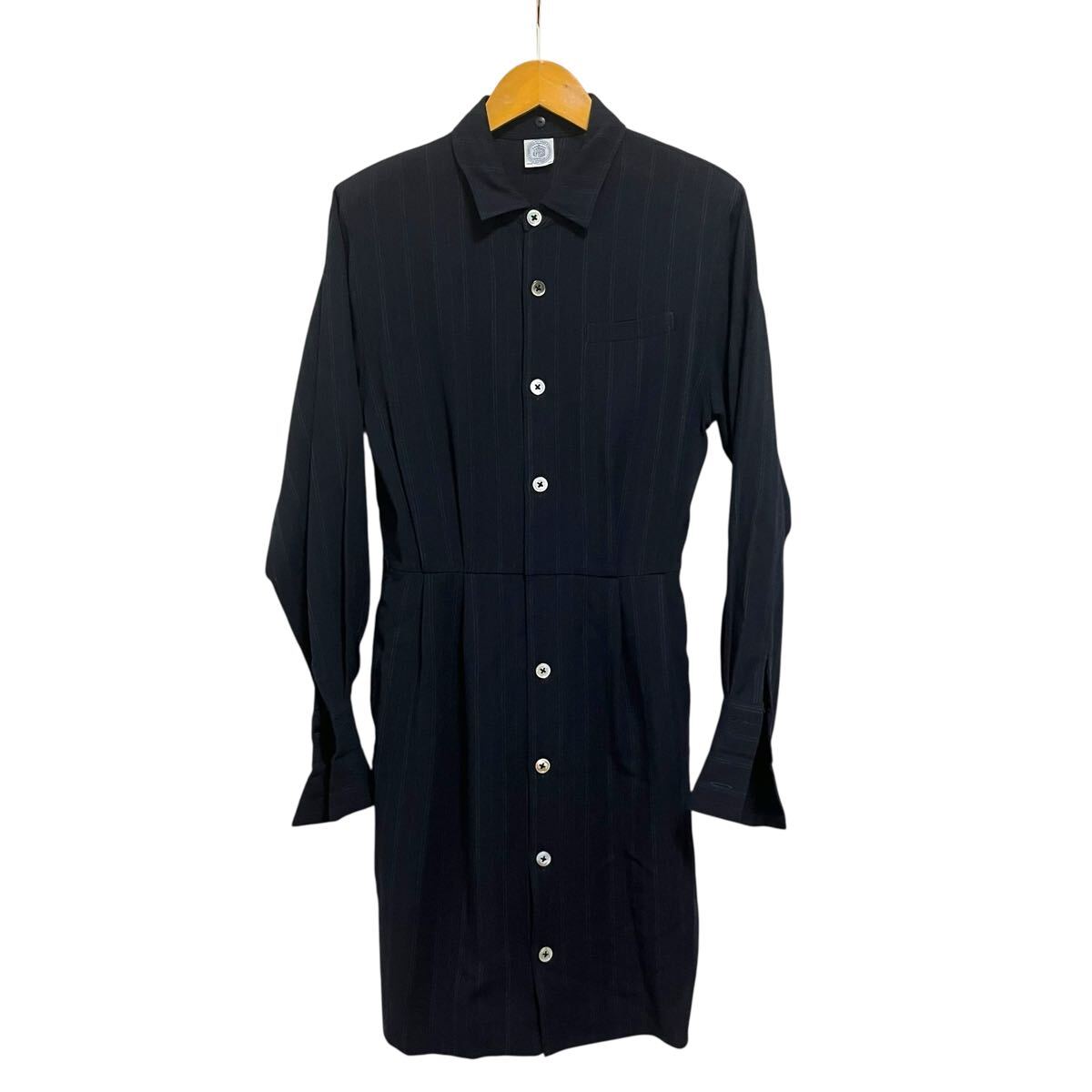 > ※I J.PRESS ジェイプレス ウールシャツワンピース 長袖 ひざ丈スカート ネイビー ストライプ 日本製 表記9AR レディースM相当