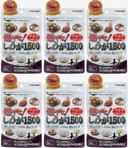 - 6袋 燃ヤセ!しょうが1500 90粒入 燃活ダイエットを目指すあなたをサポート。タイ王国厚生省認定のブラックジンジャーを配合してます。
