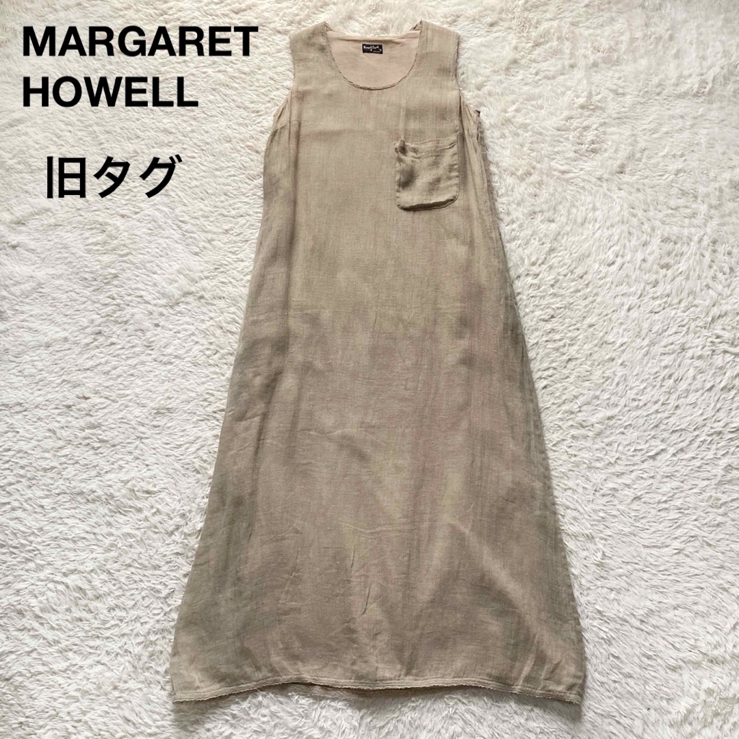 - 美品 旧タグ マーガレットハウエル 上質リネン ロングワンピース ノースリーブ Aライン ナチュラルカラー 2サイズ 日本製 MARGARET HOWELL