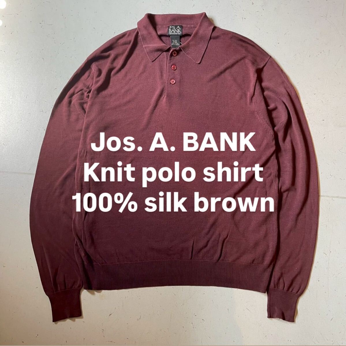 > Jos. A. BANK Knit polo shirt 100% silk brown ジョーズ エー バンク ニット ポロシャツ 100%シルク 茶色