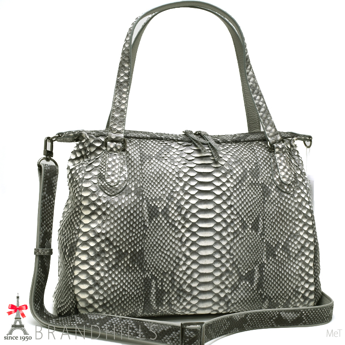 - パイソン トートバッグ メンズ レディース ナチュラル グレー マット加工 スネーク 錦ヘビ 2WAY ショルダー 新品