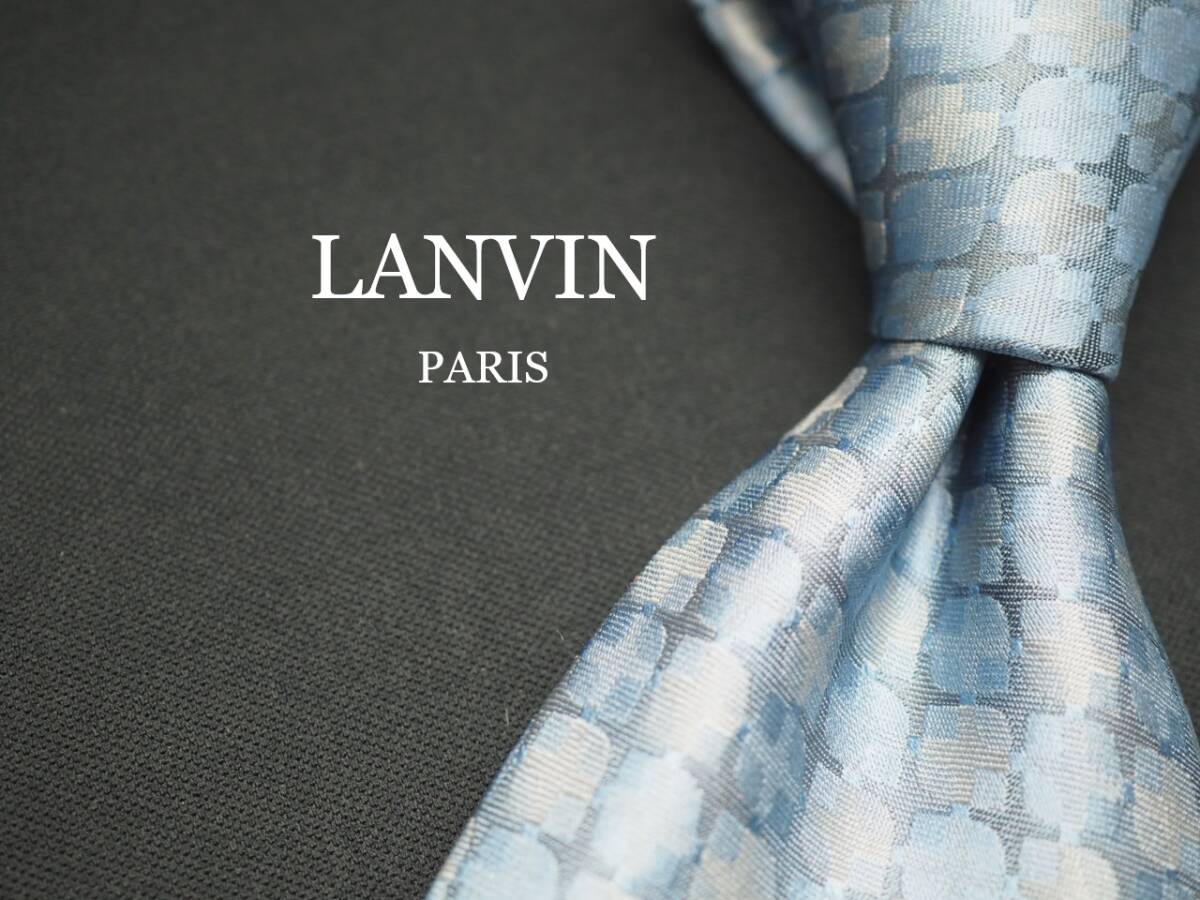 - 美品【LANVIN ランバン】 F1665 水色シルバー系 SILK ブランド ネクタイ 古着 良品