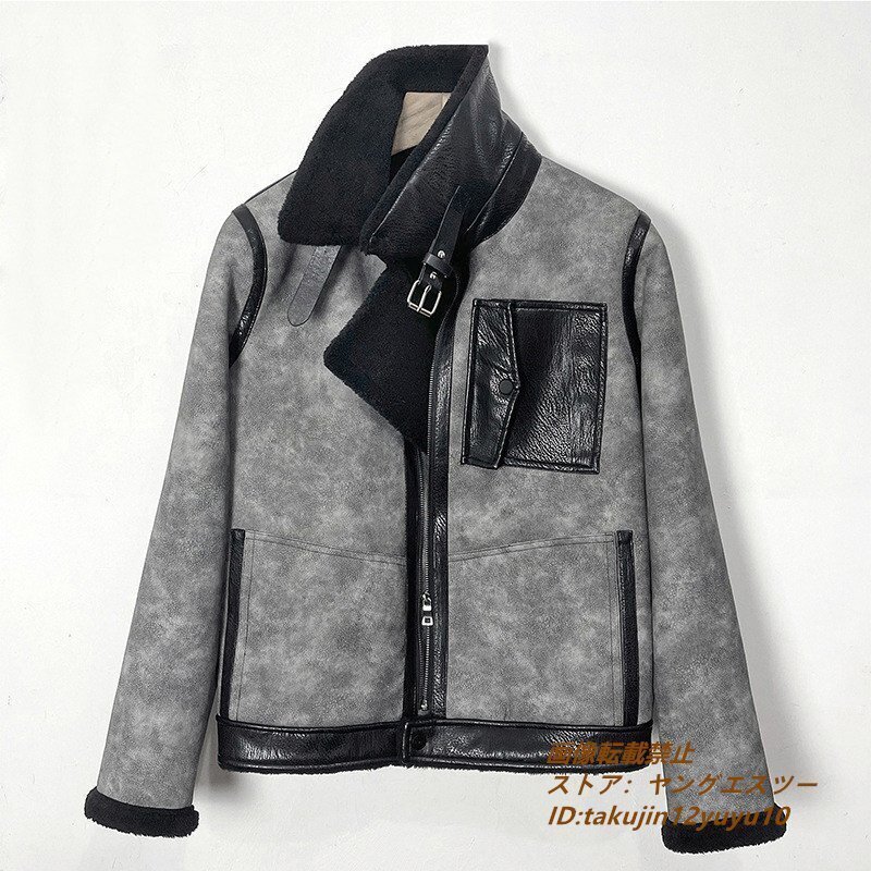 > 最高級*定価16万 ムートンコート 厚手フライトジャケット 厚手 ファーコート メンズ ブルゾン 超防寒 ジャンバー バイクウェア グレーM-5XL