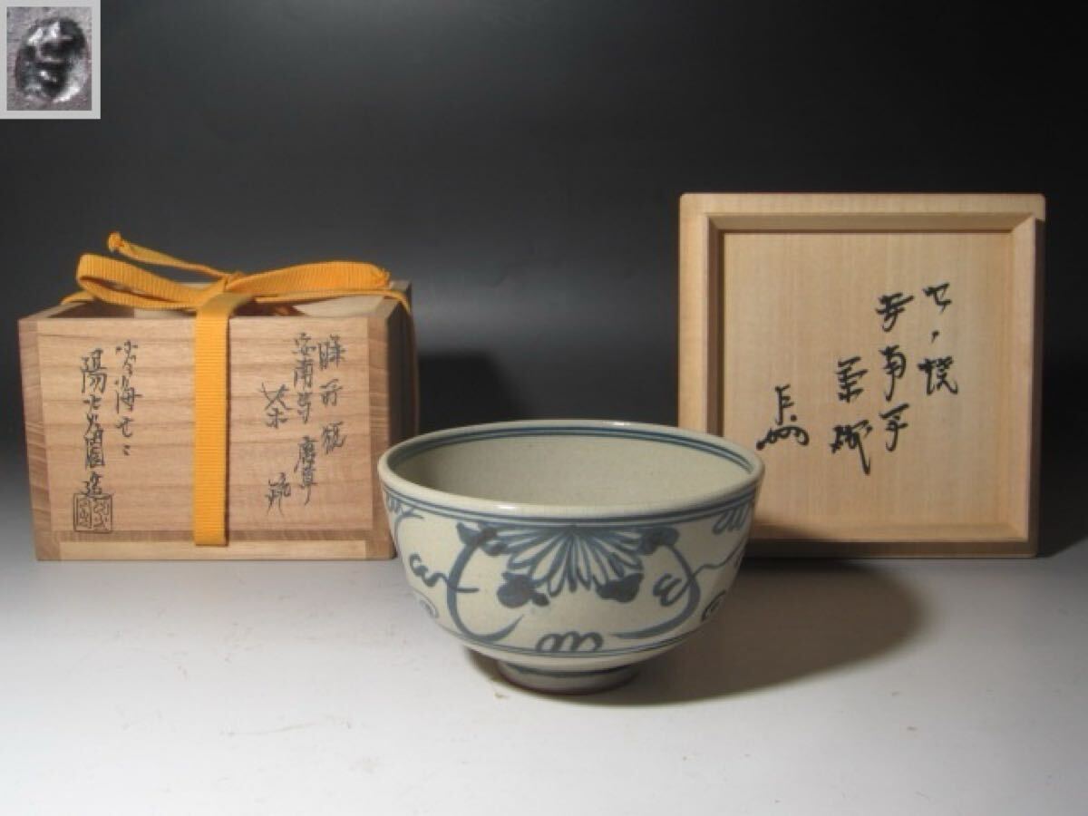 - ☆ 膳所焼 安南写茶碗 表千家 十三代 即中斎の花押がございます☆y389