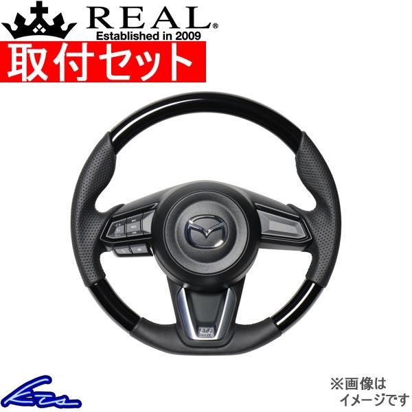 > CX-8 KG ステアリング レアル オリジナルシリーズ MZD-PBW-BK 取付セット REAL ソフトDシェイプ 純正同径 ガングリップ CX8 ハンドル