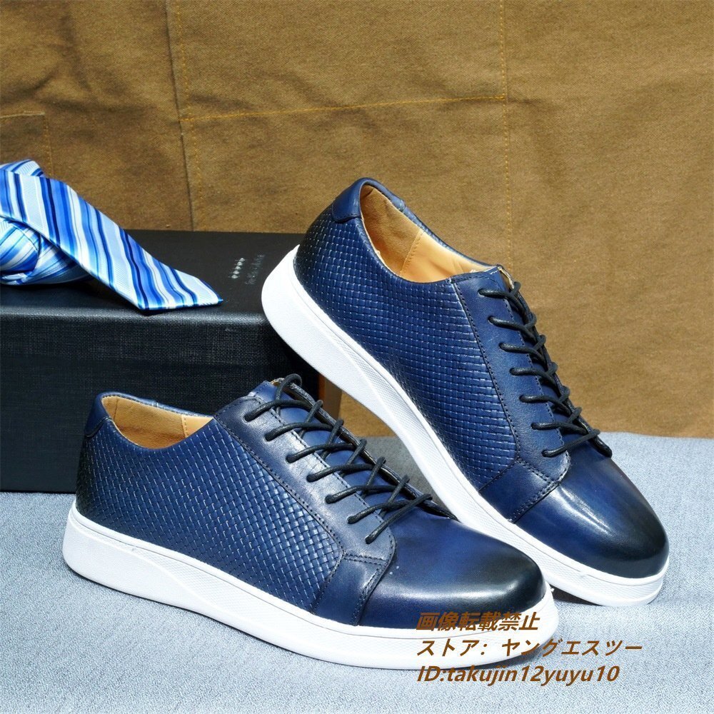 - 定価8万超◆最高級 スニーカー 本革 レザーシューズ メンズ スリッポン 牛革 ローファー 紳士靴 ビジネスシューズ 革靴 ブルー 28.5cm